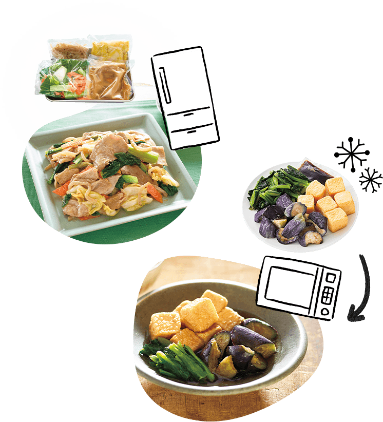 野菜はカット済みで、添付のたれで味付けすればでき上がり。包丁を使わないセットもあるので、あと片付けもラクラク。レシピ通りに作れば、料理初心者さんでも迷わず、簡単に料理ができます。
