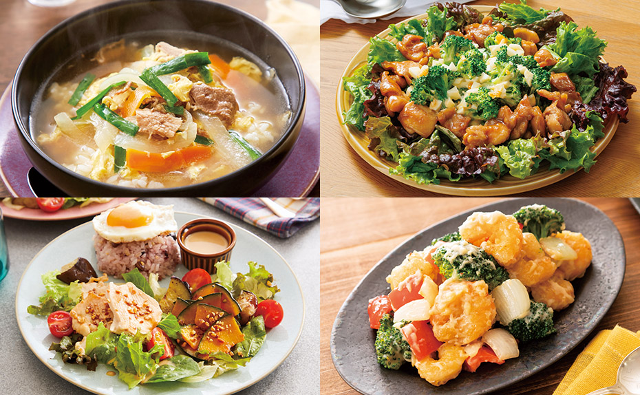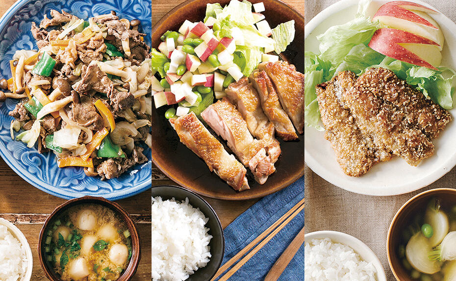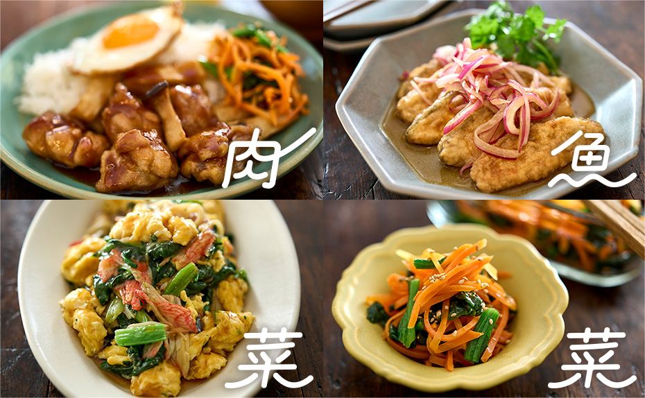 - 肉おかずと魚おかず各1品、野菜おかず2品が簡単に作れる