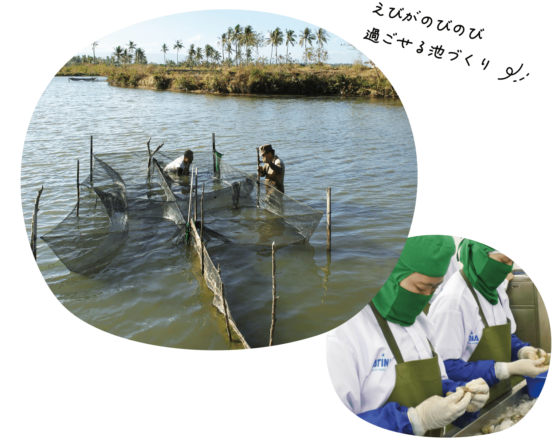 えびの養殖が盛んなインドネシア。パルシステムの『エコシュリンプ』は、環境に配慮した「粗放養殖」で育てられ、現地法人のオルター・トレード・インドネシア社が原料集荷・製造・輸出を行っています。