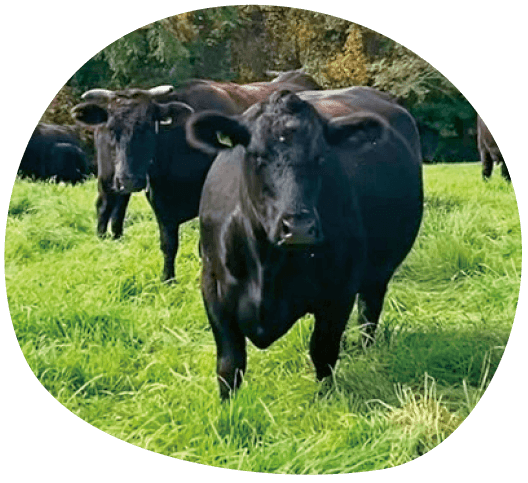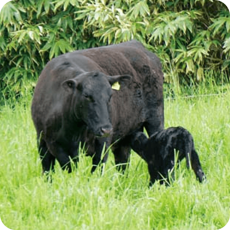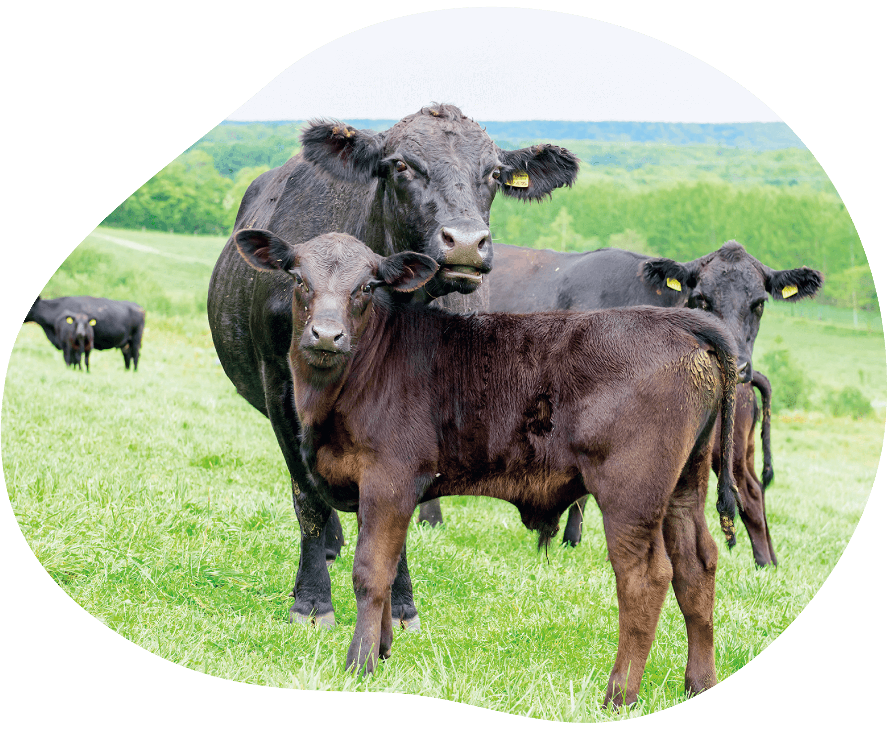 そこから始まった、『コア・フード牛』への挑戦。子牛の時期を中心に、夏の間は屋外の放牧地で育て、繁殖も自然に任せます。霜降り肉にするために、牛舎で高カロリーの穀物飼料を与えて太らせる一般的な肉牛の飼育とは、真逆のやり方です。