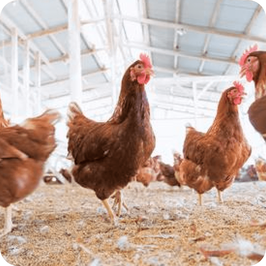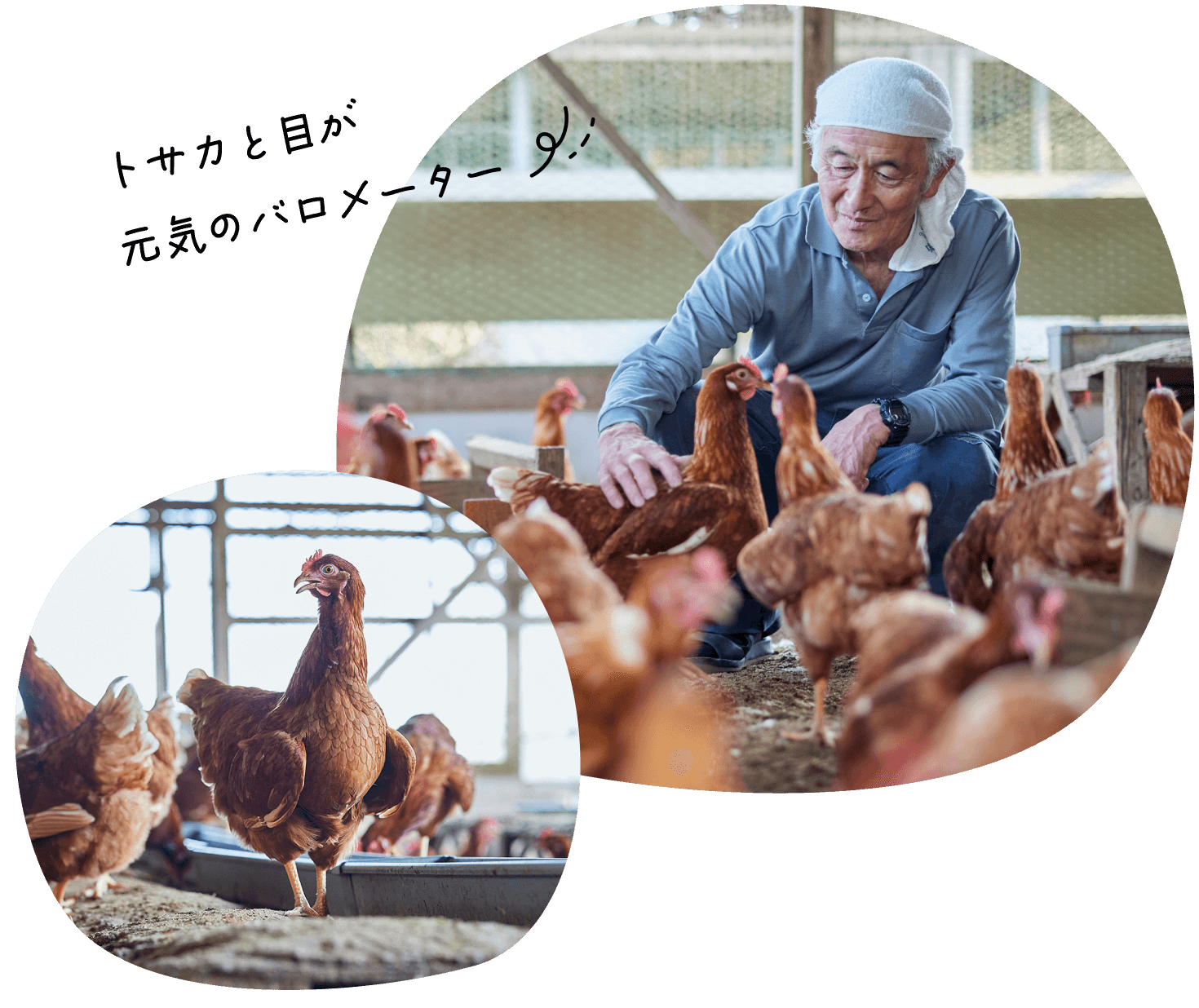 小屋にのびのびと歩き回れるスペースを作り、ストレスが少ない環境で、ひよこのうちからからだを鍛えさせます。こだわりの飼料でおなかの調子も整え、しっかりと健康の土台づくり。