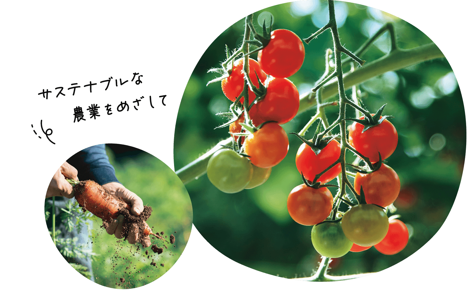 環境にも、人にもやさしい農業を、もっとあたりまえに。「守る」だけではなく、ポジティブな影響を与えられるように。食べる人と作る人のお互いの理解で、「未来に続く農業」がつくられていきます。