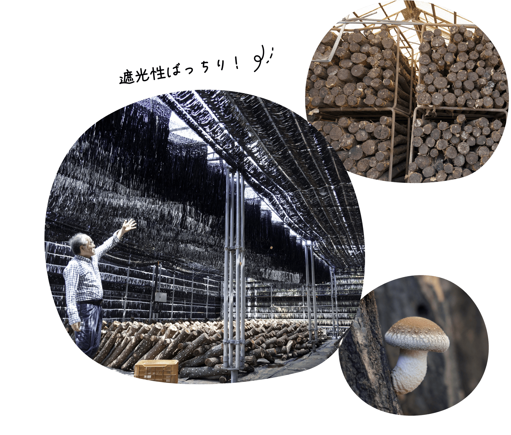 その方法が、畑で作物を育てながら、上部に設置した太陽光パネルで発電をする「ソーラーシェアリング」でした。パネルが日差しを遮るため、ハウスで栽培することが多いしいたけは相性がよい作物です。