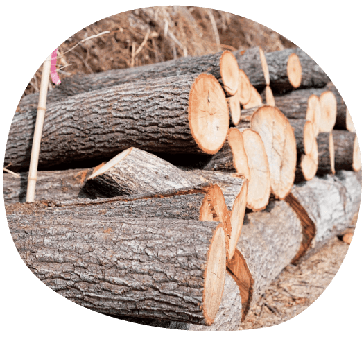 重要な取り組みのひとつが「間伐材(かんばつざい)」の活用です。間伐材とは、森林保全のために伐採された針葉樹(主にスギ)のこと。なかには、細すぎたり、「節」と呼ばれる枝の跡が多く残っているものもあります。