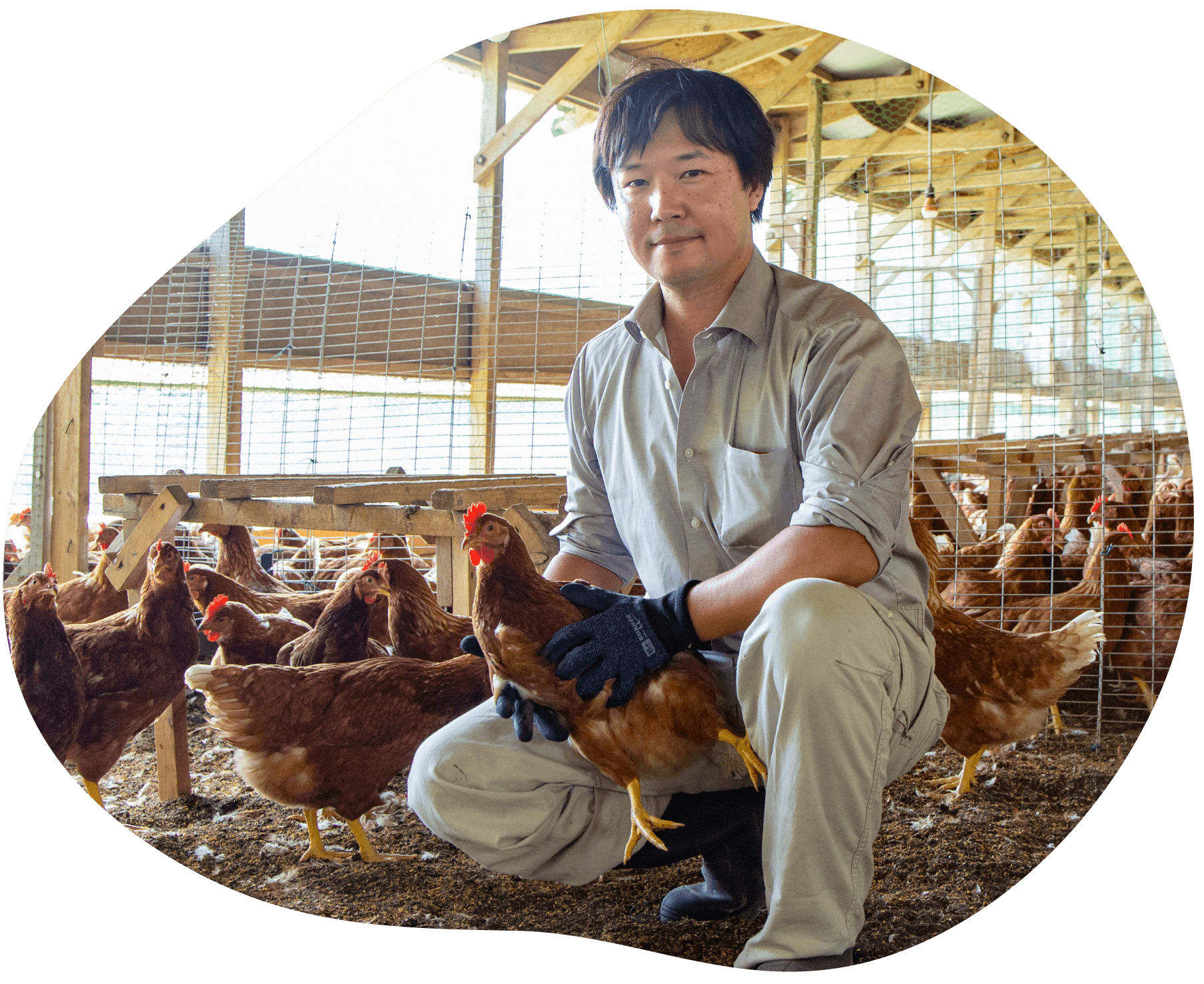 「地域で連携をしながら、同じ志をもち、共感し合える仲間といっしょにがんばっていきたい」と話す、代表の向山洋平さん。その連携はたまごのおいしさとなって、私たちの食卓に届いています。
