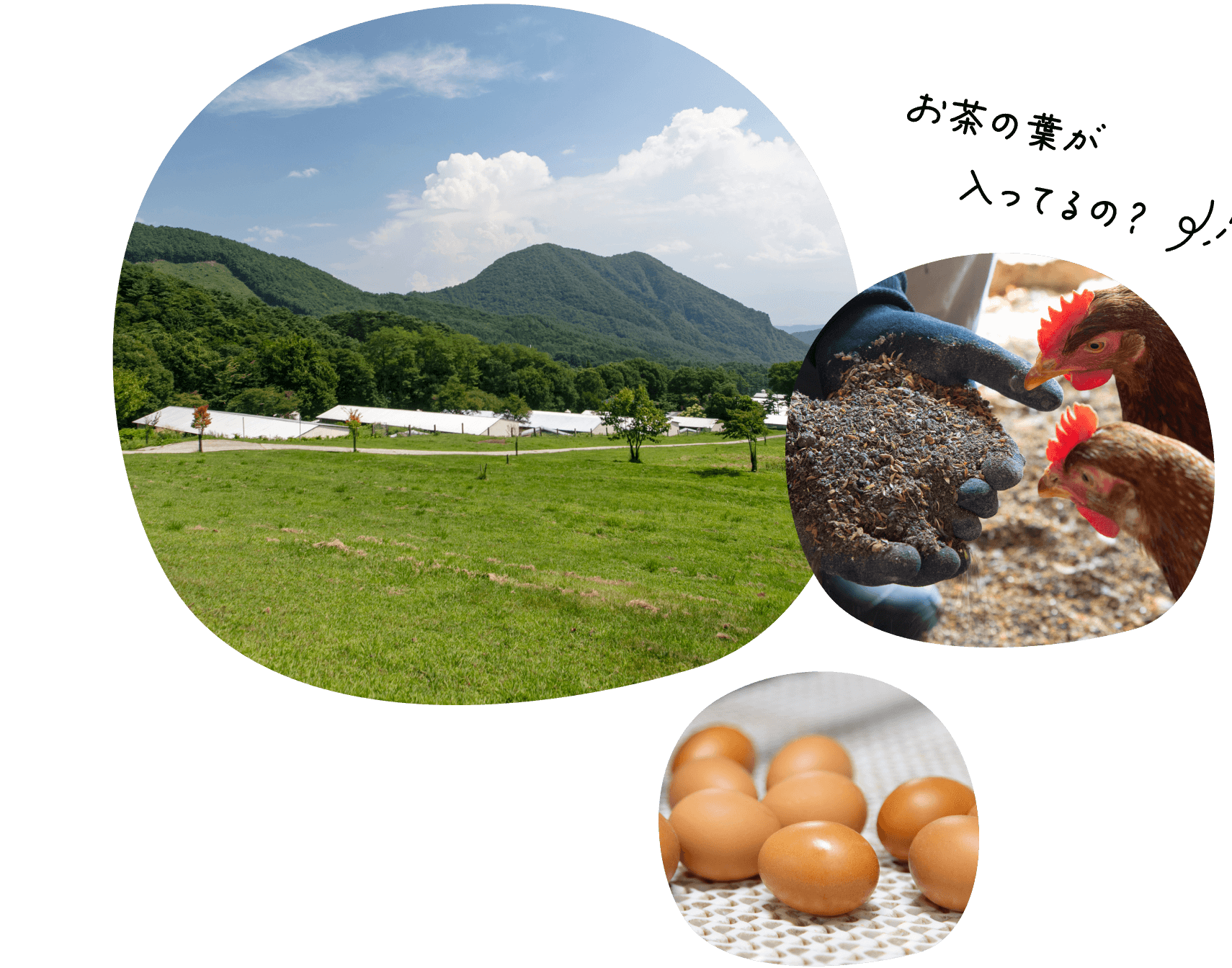 やわらかな風と光が入る鶏舎では、鶏たちがのびのびと歩き回っています。鶏が踏みしめている地面に敷かれているのは、農場近くの森の落ち葉や、鶏ふん、茶殻を発酵させた堆肥です。