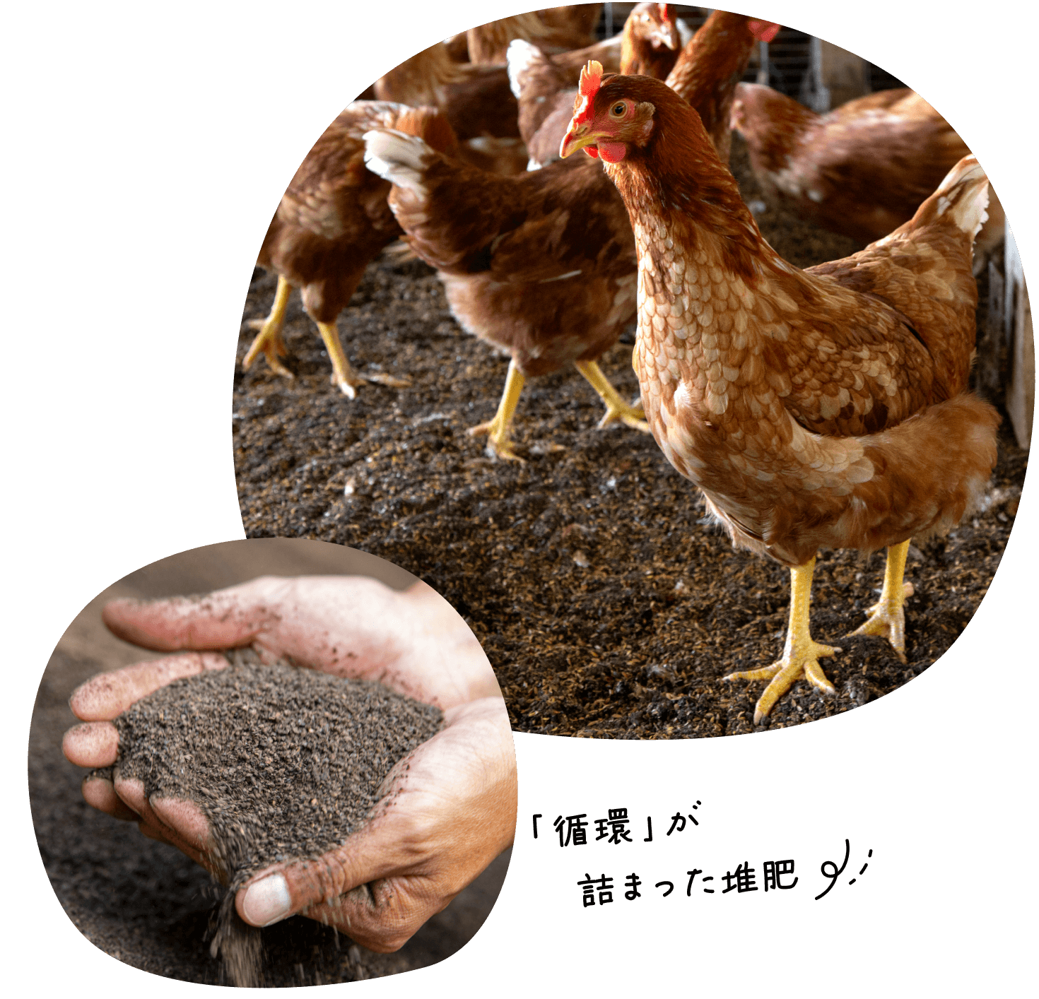 米沢郷牧場では、この昔ながらのやり方を生かし、資源を循環させる農業を営んできました。鶏舎で出た鶏ふんを地域の田畑に。そこでとれた米や米ぬかは、鶏の飼料にしています。