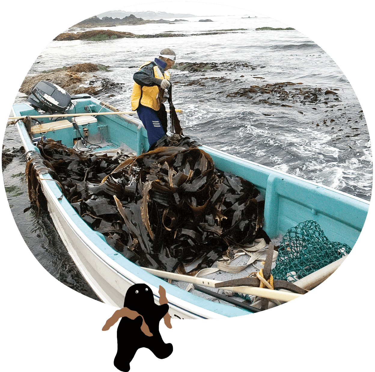 ひとつは、パルシステムの産直産地・えりも漁業協同組合でとれた昆布。根の部分の「ガニアシ」は、通常は廃棄されていますが、土にミネラル分をもたらしてくれる存在として役立てています。