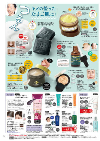化粧品のオプションカタログ。スキンケアを中心にメーク、ボディケア、ヘアケア品まで取り揃えており、ビューティーの悩みにお応えします。